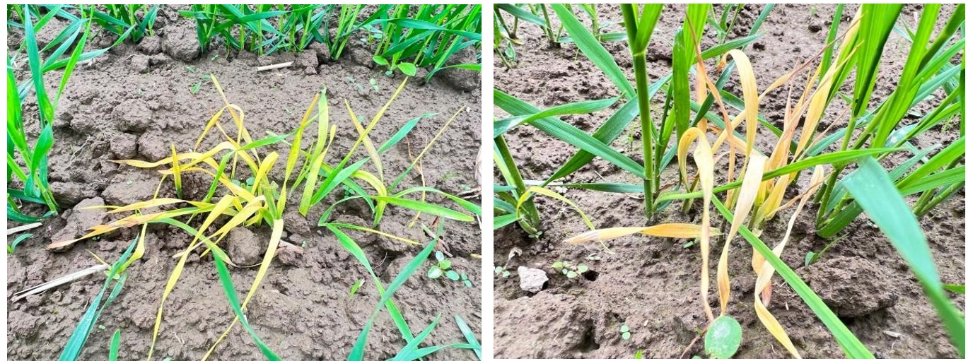 Поврежденные растения яровых культур проволочниками