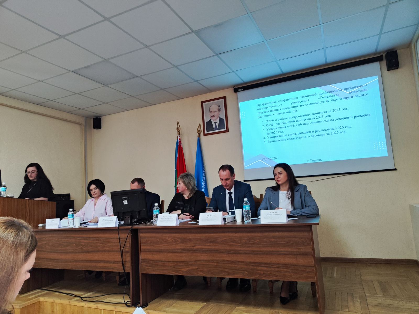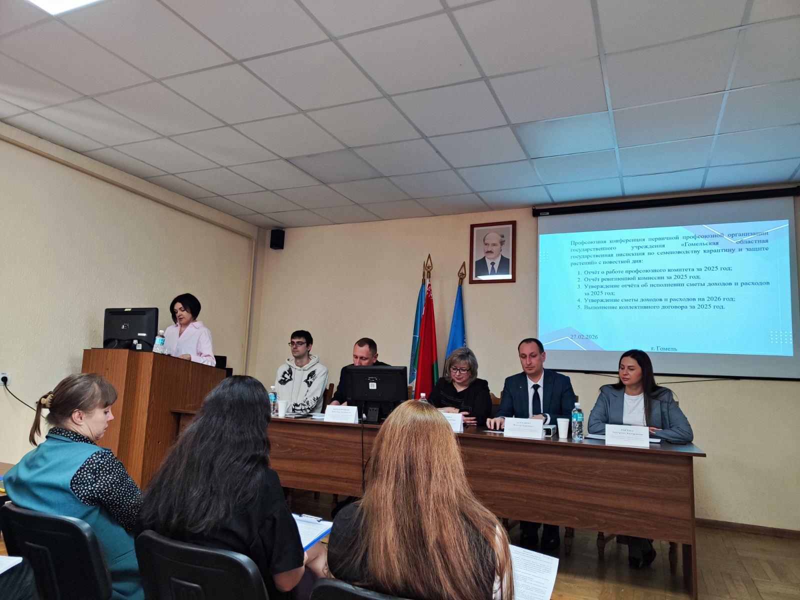 27.02.2026 года состоялась конференция первичной профсоюзной организации государственного учреждения «Гомельская областная государственная инспекция по семеноводству, карантину и защите растений». С отчетом о проделанной работе за 2025 год выступили председатель профсоюзной организации Ирина Дашук, казначей Марина Душко и председатель ревизионной комиссии Жанна Басова. До сведения делегатов конференции доведено исполнение сметы доходов и расходов за 2025 год, выполнение коллективного договора, а также утверждена смета доходов и расходов первичной профсоюзной организации на 2026 год. Работа профсоюзного комитета за отчетный период делегатами конференции одобрена единогласно.